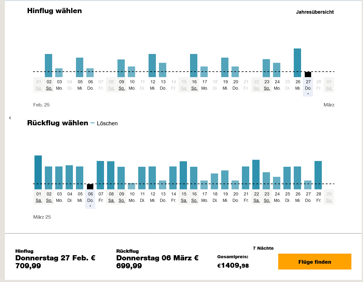 If you click on the “+” you’ll get an overview for each month (with one-way prices)