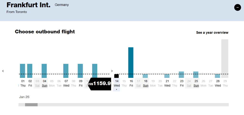 2. If you click now on the “+” you’ll get an overview for each month (with one-way prices)