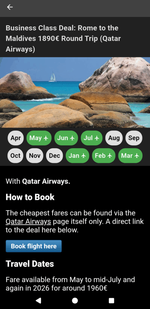 Whether you’re hunting for affordable business class tickets or exclusive first-class deals from Europe, USA or Canada, this app is your ultimate travel companion.