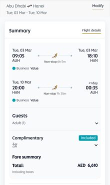 Etihad Airways Business Class Deal: Abu Dhabi to Hanoi US$1799 Round Trip (nonstop)