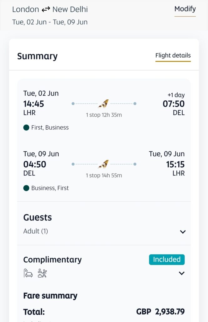 Enjoy a private suite on your flight between London to Abu Dhabi, followed by a Business Class seat from Abu Dhabi to your chosen destination in India. Etihad Airways is renowned for its award-winning first-class experience.