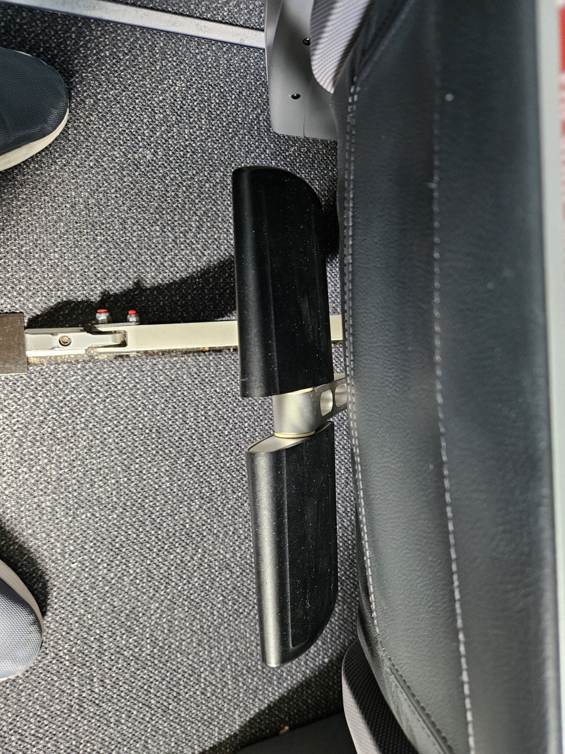 The fact that every seat in this Business class arrangement has its own air vent enhances passenger comfort. Additionally, the headrest can be altered by the passengers for a more customized and pleasant experience. There is a collapsible table that can be utilized for dining or work purposes. Additionally, each passenger has access to a power outlet, guaranteeing that their electronic devices are kept charged the entire journey. Although there is some storage space offered, it is important to note that it is very limited.