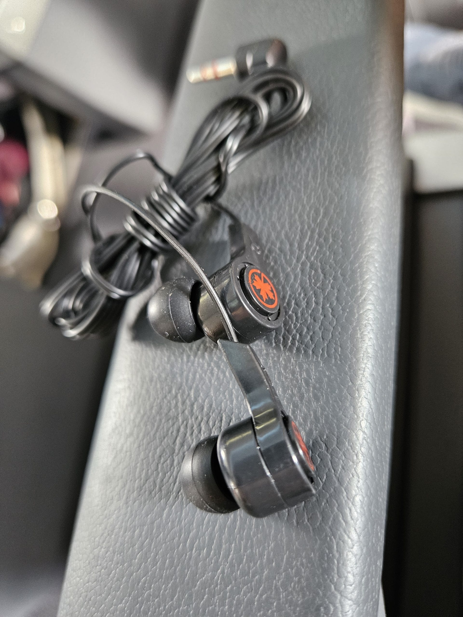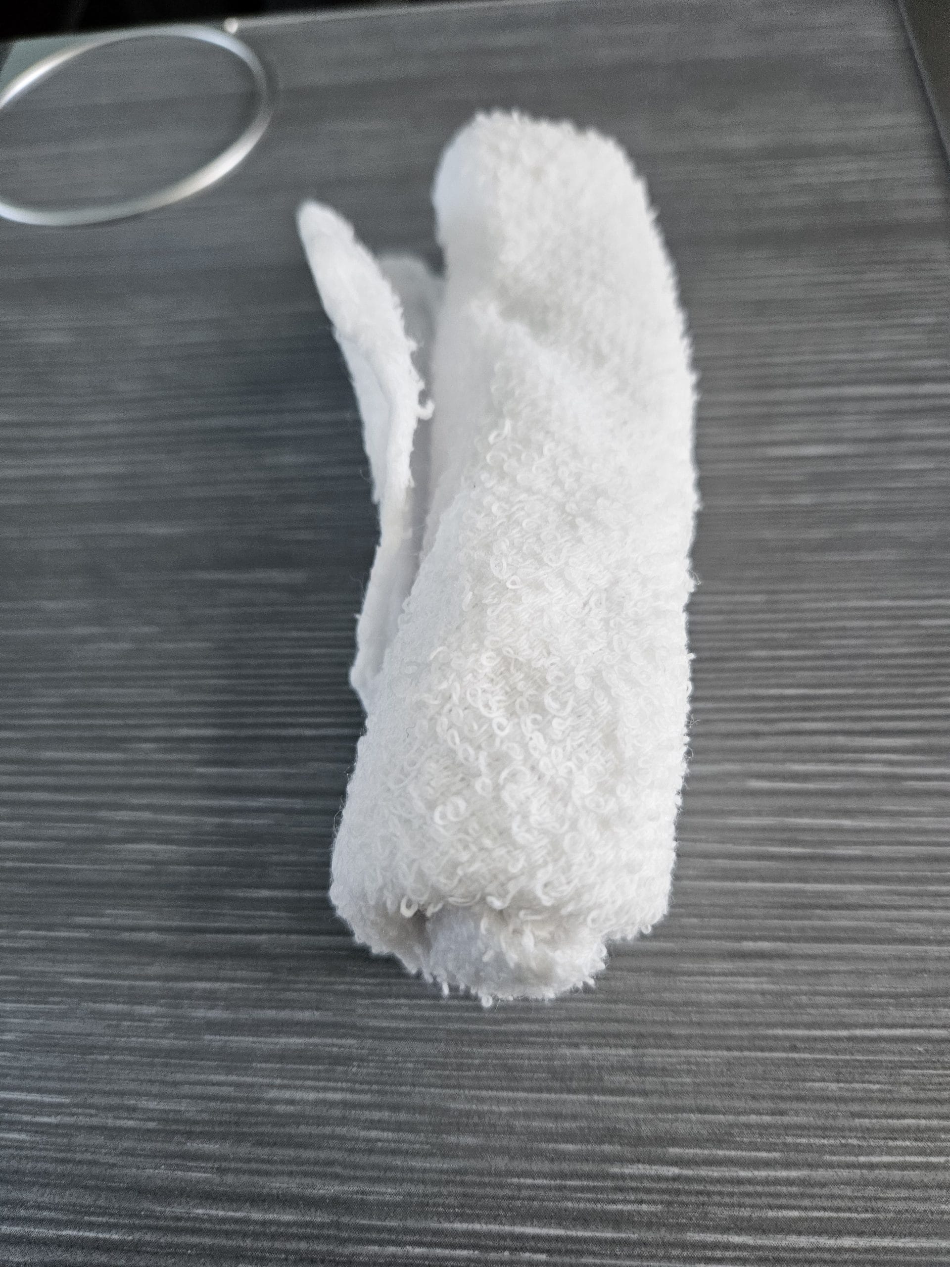 After take-off, passengers were given a heated towel and a pair of simple headphones to use for the in-flight entertainment system.