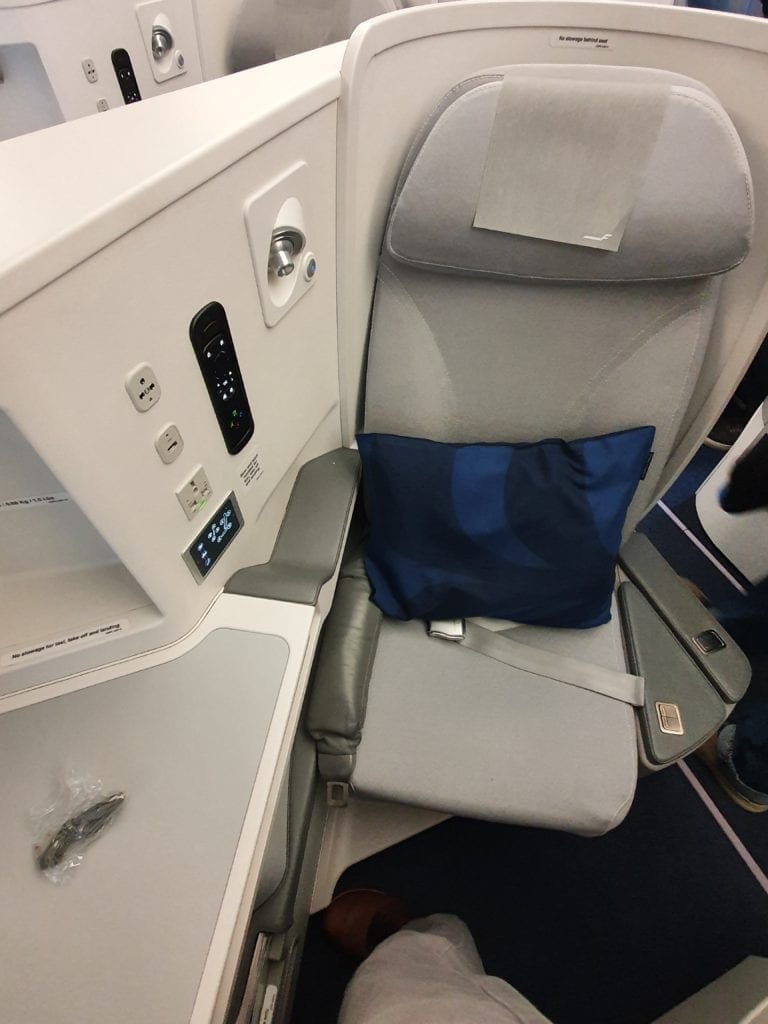 Drinks and food were good, and the staff very friendly. The seat has some drawbacks, mainly the unevenness in the lie flat position, which can be very annoying on a long haul flight without appropriate bedding.