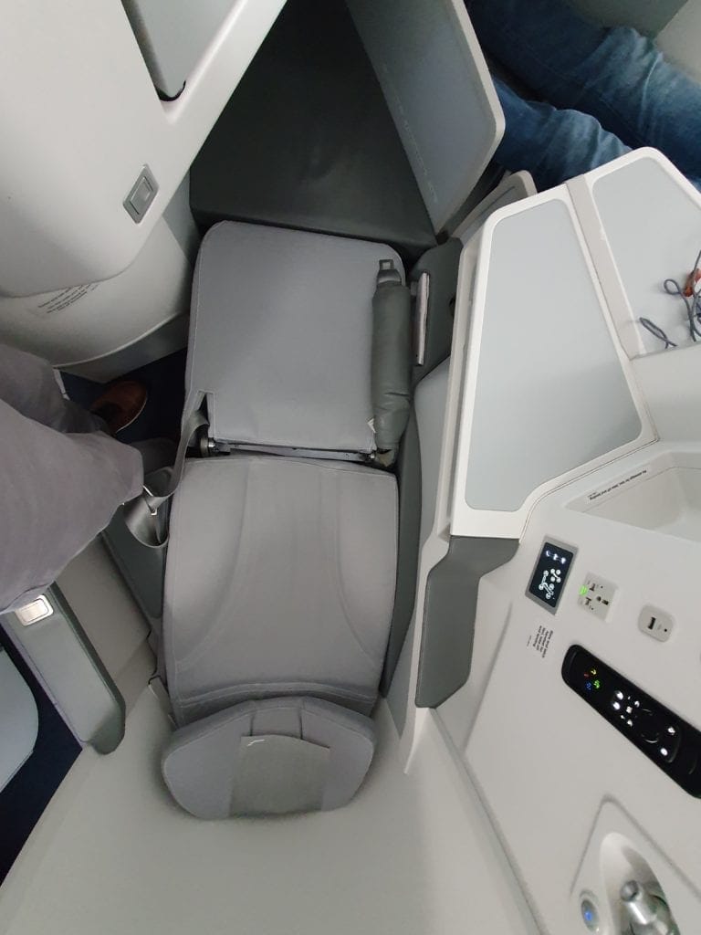 Another thing which would really annoy me during a long haul flight is that in the lie flat position, somehow there is a spot of unevenness in the back where the seat slides together. Appropriate bedding might resolve this issue, however I found this to be really disruptive already after trying the lie flat position for a couple of minutes.
