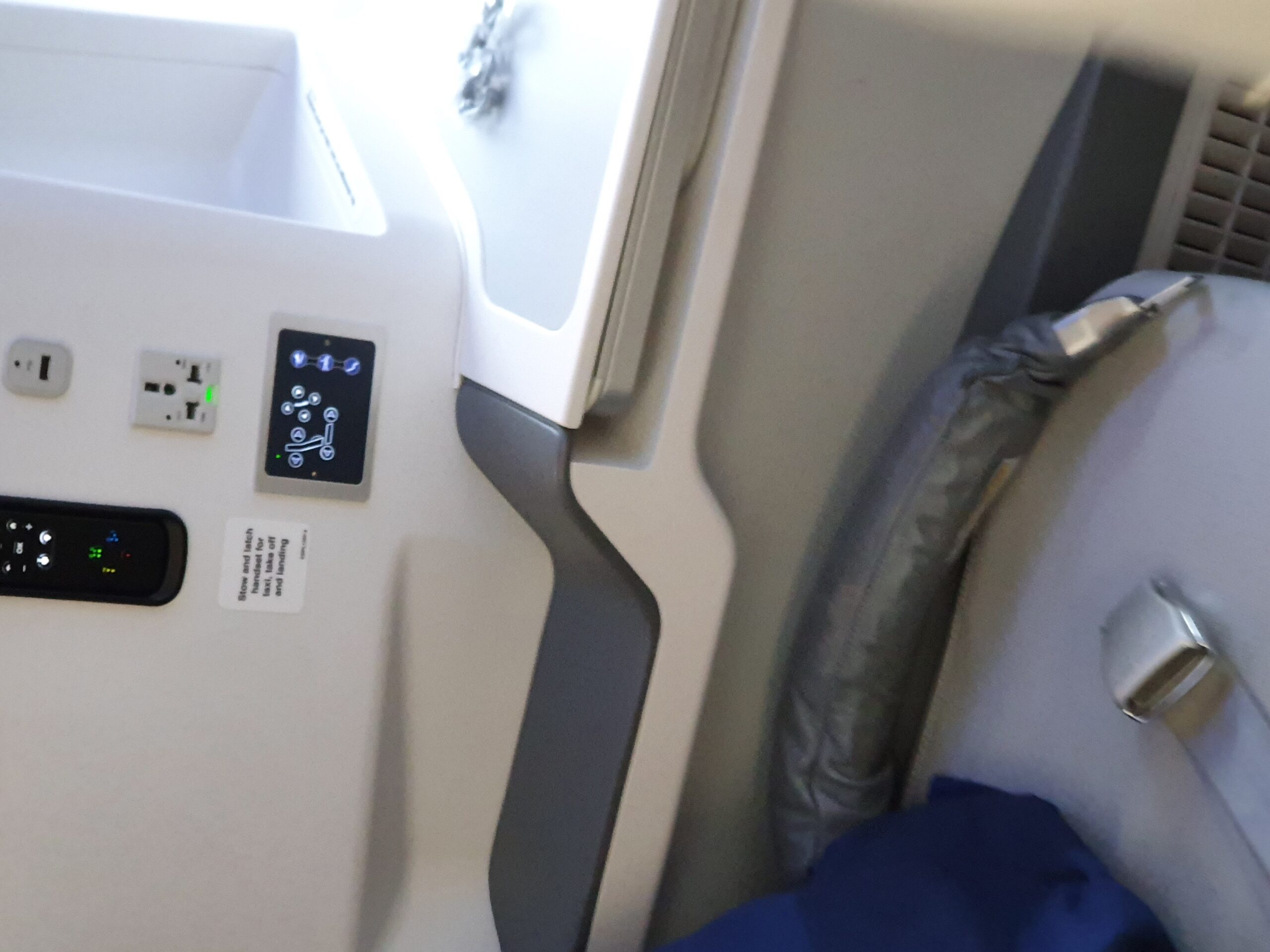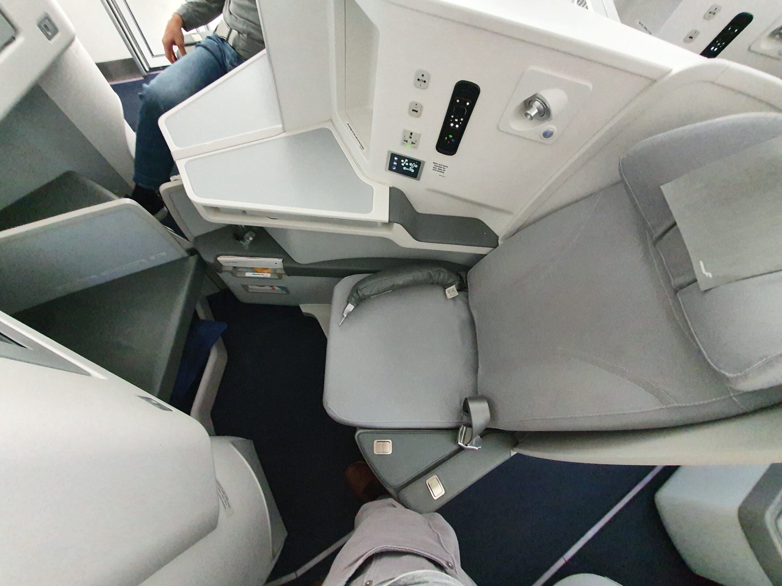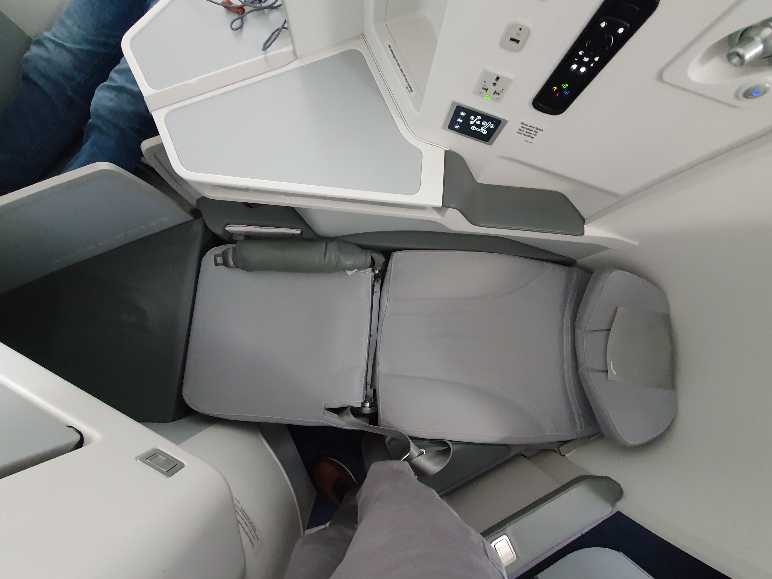 Another thing which would really annoy me during a long haul flight is that in the lie flat position, somehow there is a spot of unevenness in the back where the seat slides together. Appropriate bedding might resolve this issue, however I found this to be really disruptive already after trying the lie flat position for a couple of minutes.