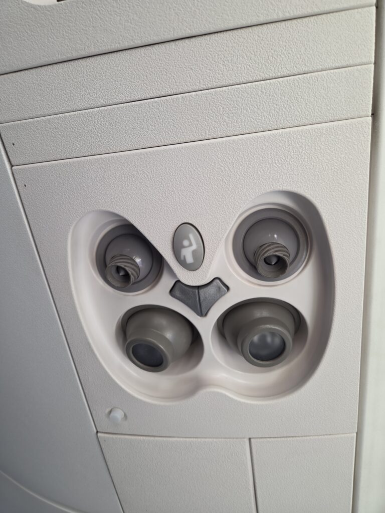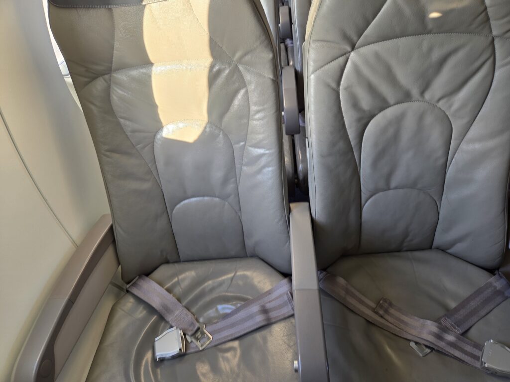 The aircraft has a 2-2 seating configuration. In Business Class, one seat next to you is blocked, giving you more space. Legroom is modest, which is manageable for the short 30-minute flight but may feel tight on longer journeys. Personal air vents are available, adding a touch of comfort for the brief trip.