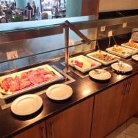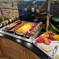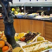 Breakfast was buffet and served at the main restaurant. The choices were very good, from cold to warm dishes and a wide variety of fruits and bread, everything was available. You could also get some egg dishes as well as pancakes at a cooking station.