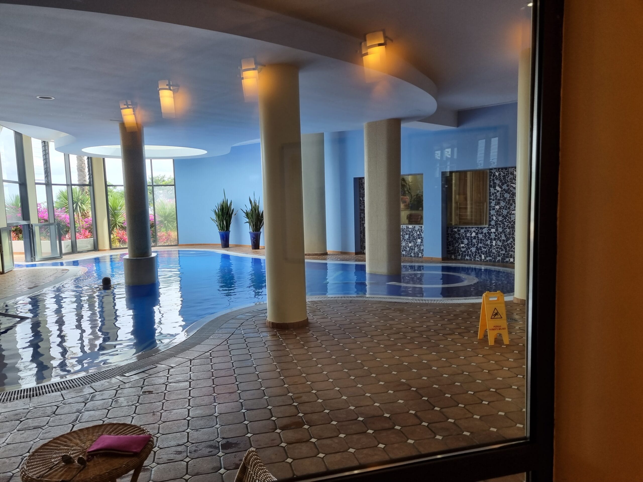 Furthermore, you have a small children’s pool and many sunbeds near the pool or in the garden area. We never had a problem to find a quiet spot.Another indoor pool with a spa is available too.