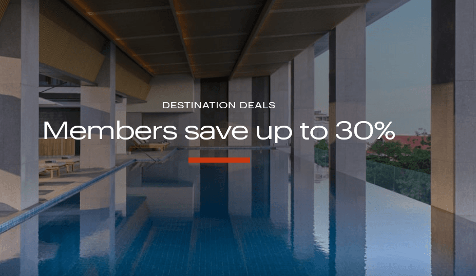 The “Destinations Deals” member promotional rate “save up to 30% off Best Flexible Rate (BFR) for IHG One Rewards Members” is valid across participating properties and brands in select markets.
