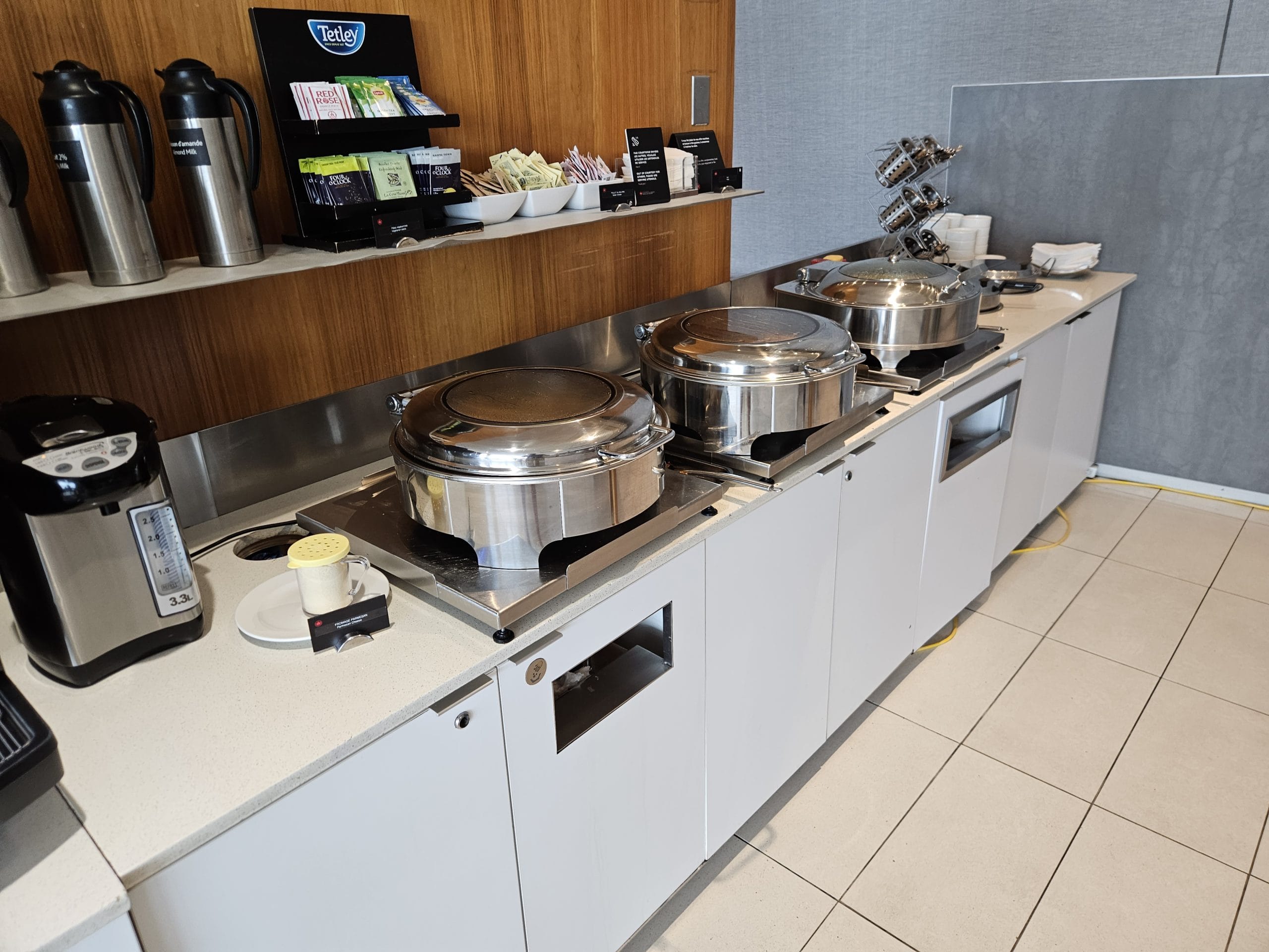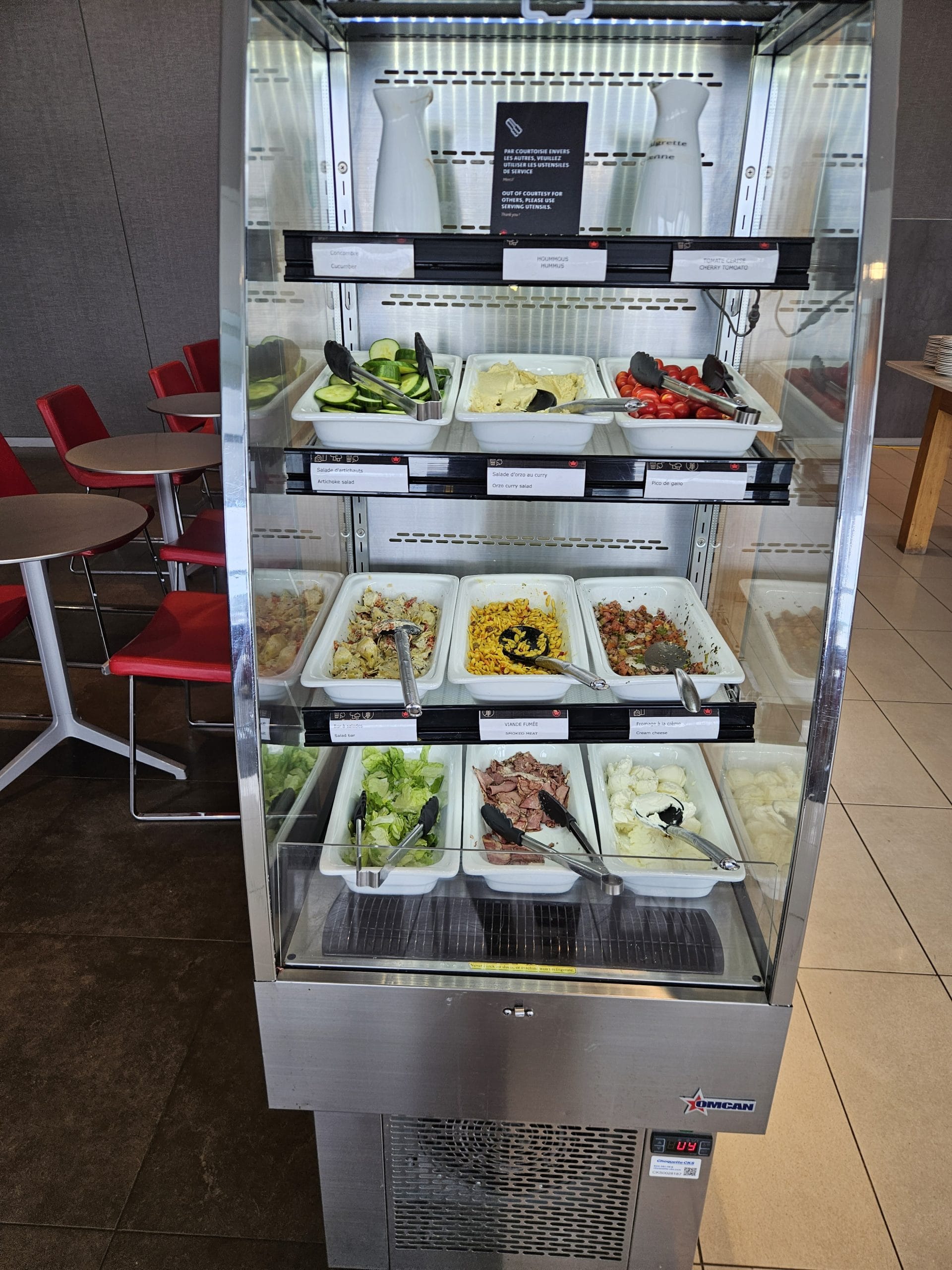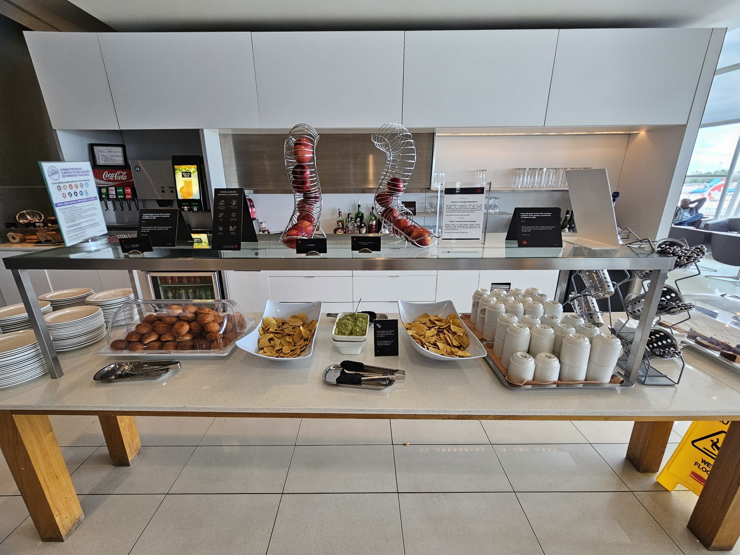 The lounge’s food options are pretty good and include a wide variety of options. Customers have a choice of complementary hot foods, as well as light snacks and a selection of desserts. The appetizer and salad buffet stands out in particular since everything presented tasted very well.