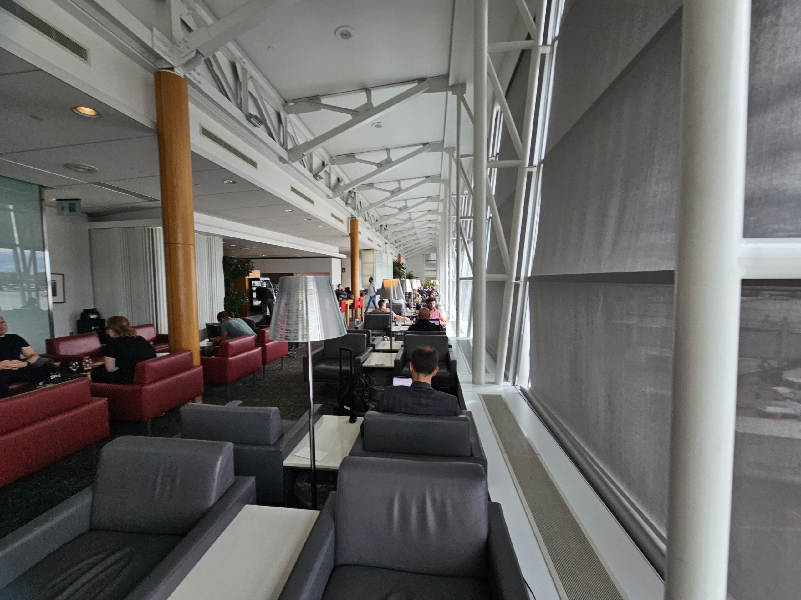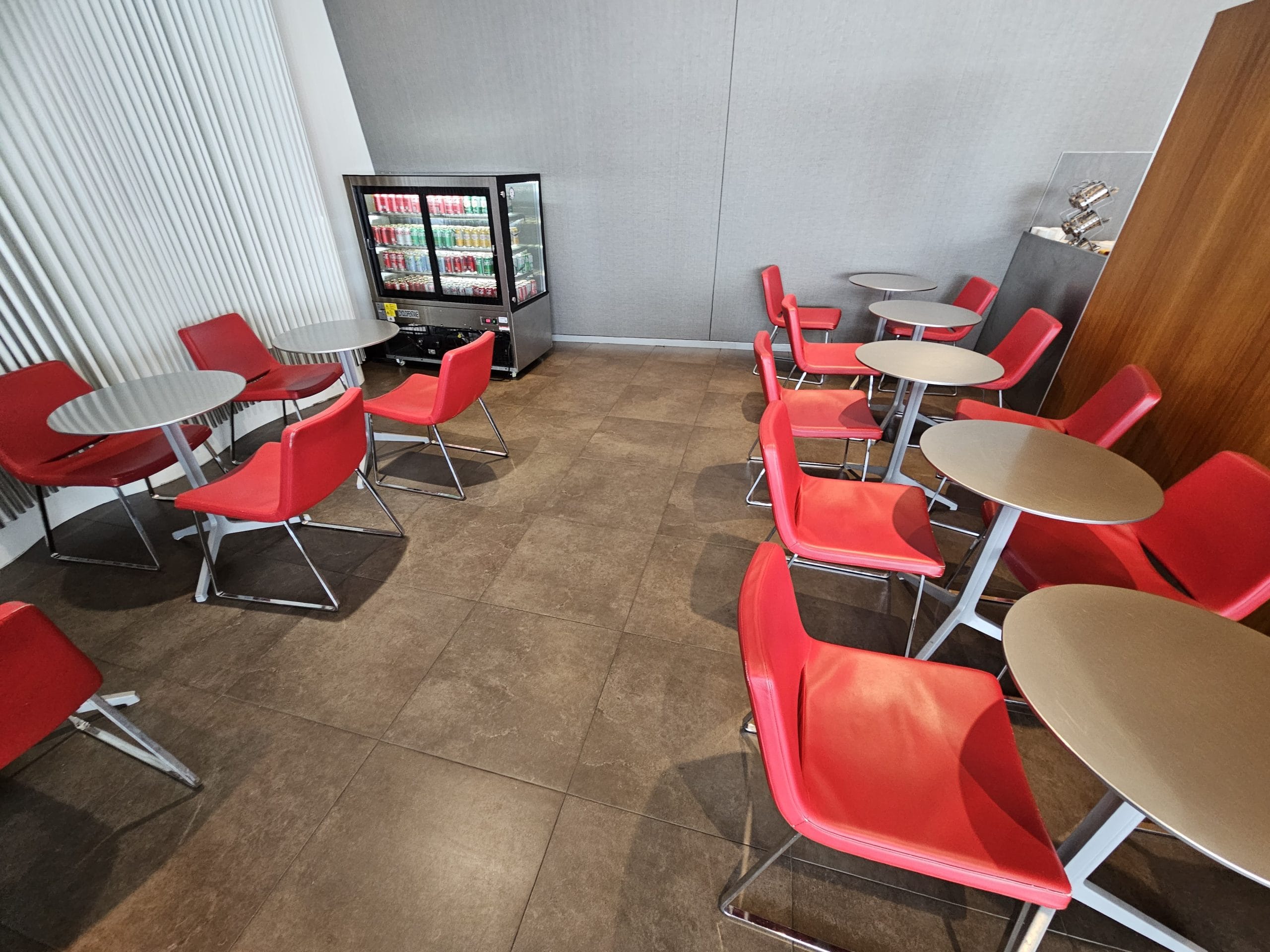 The lounge can be noted as solid. You have enough seats available and a solid food with drinks selection.