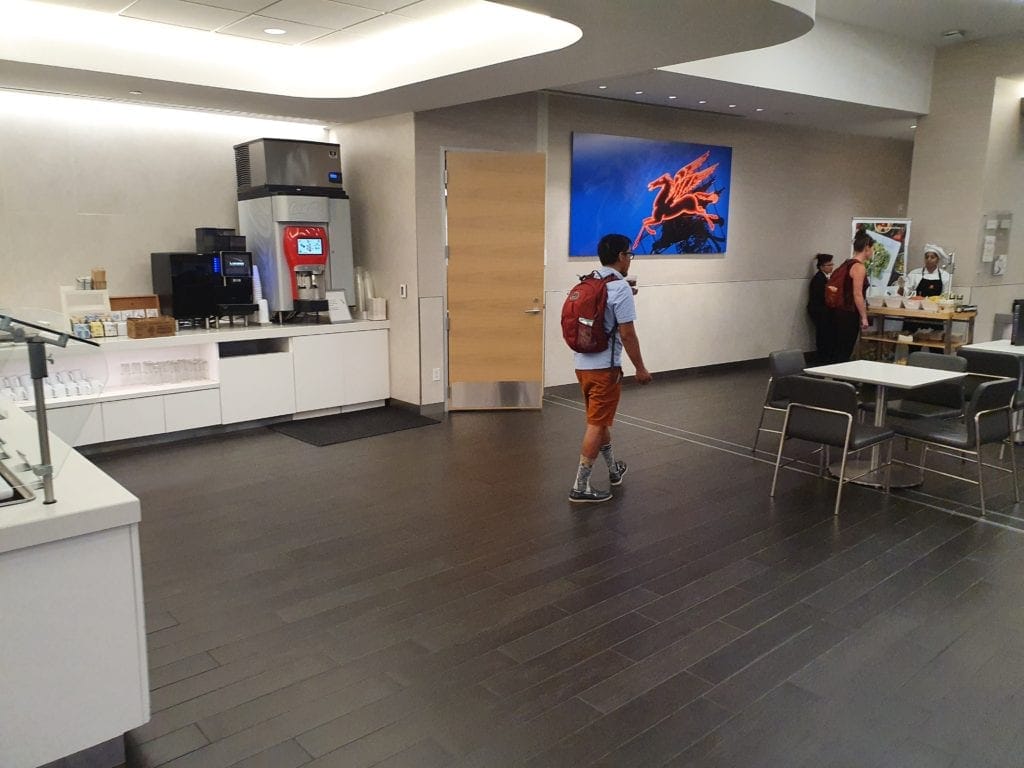 The American Admirals Club Dallas is very spacious and everyone will find a nice spot to sit in. The hot food is really good but unfortunately you have to pay for it, which is the same for premium alcohol.