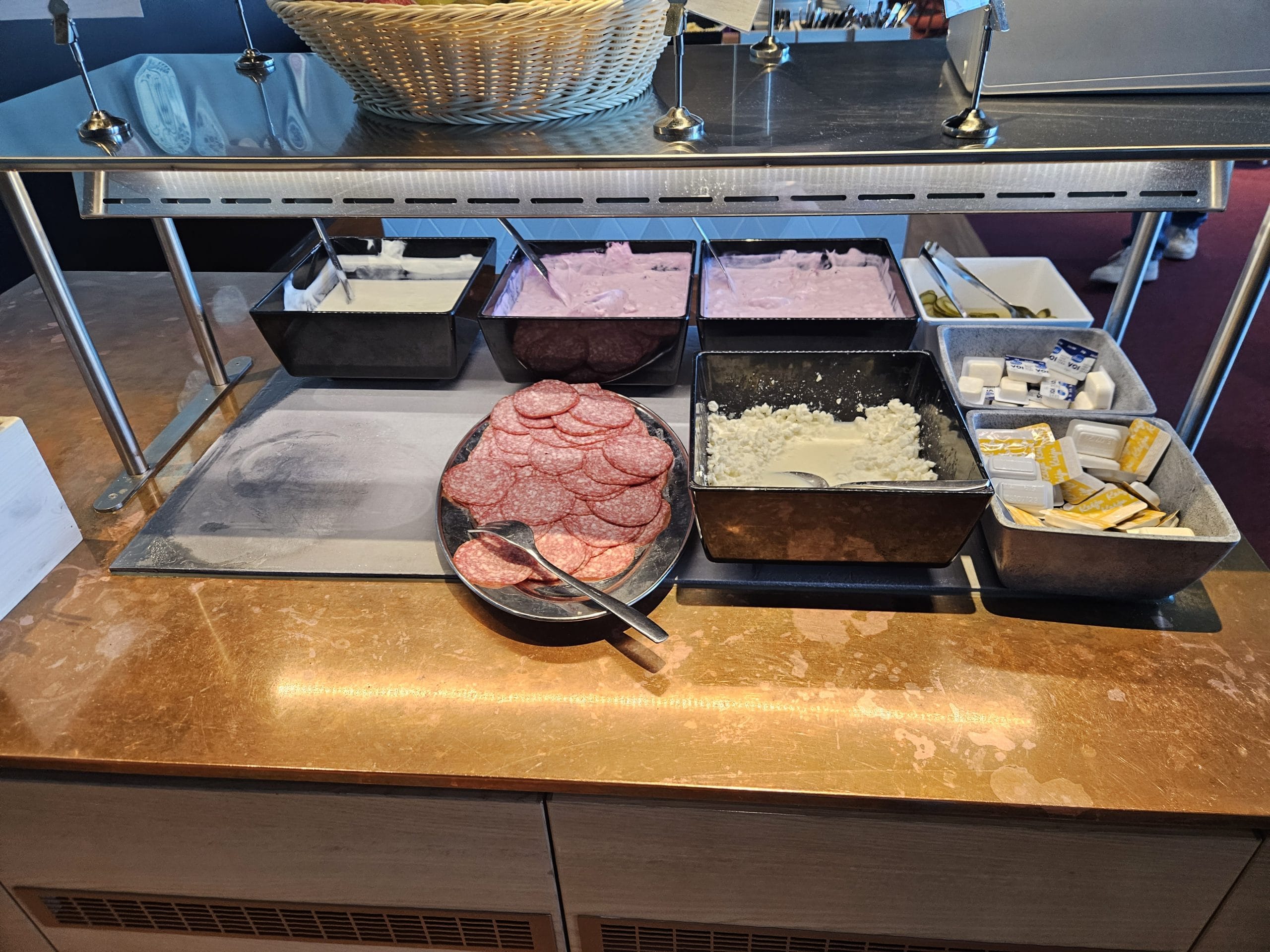 In terms of food, the lounge only offered a limited number of cold options such as bread, salad, yoghurt, and spreads, none of which were particularly appetizing.