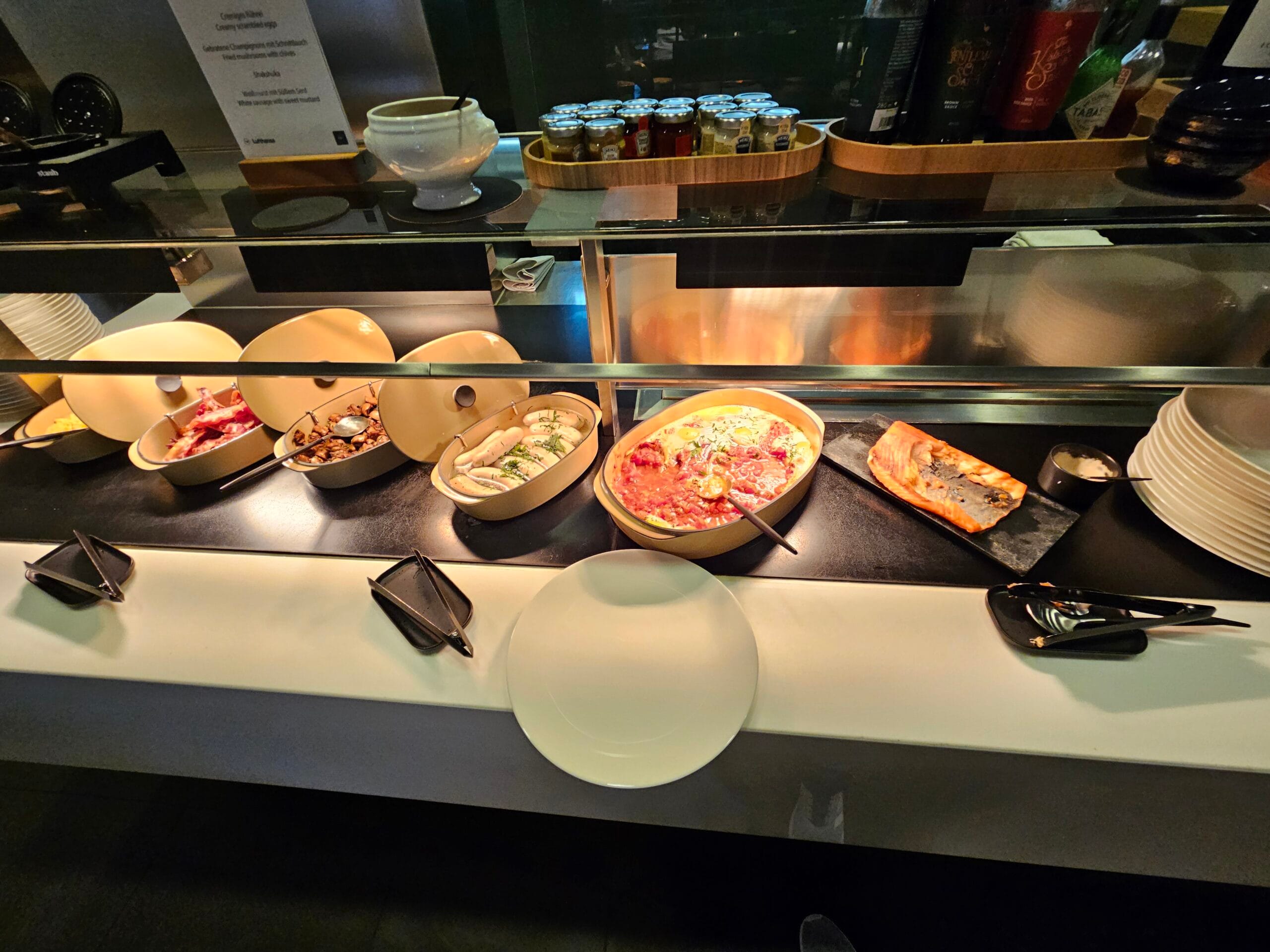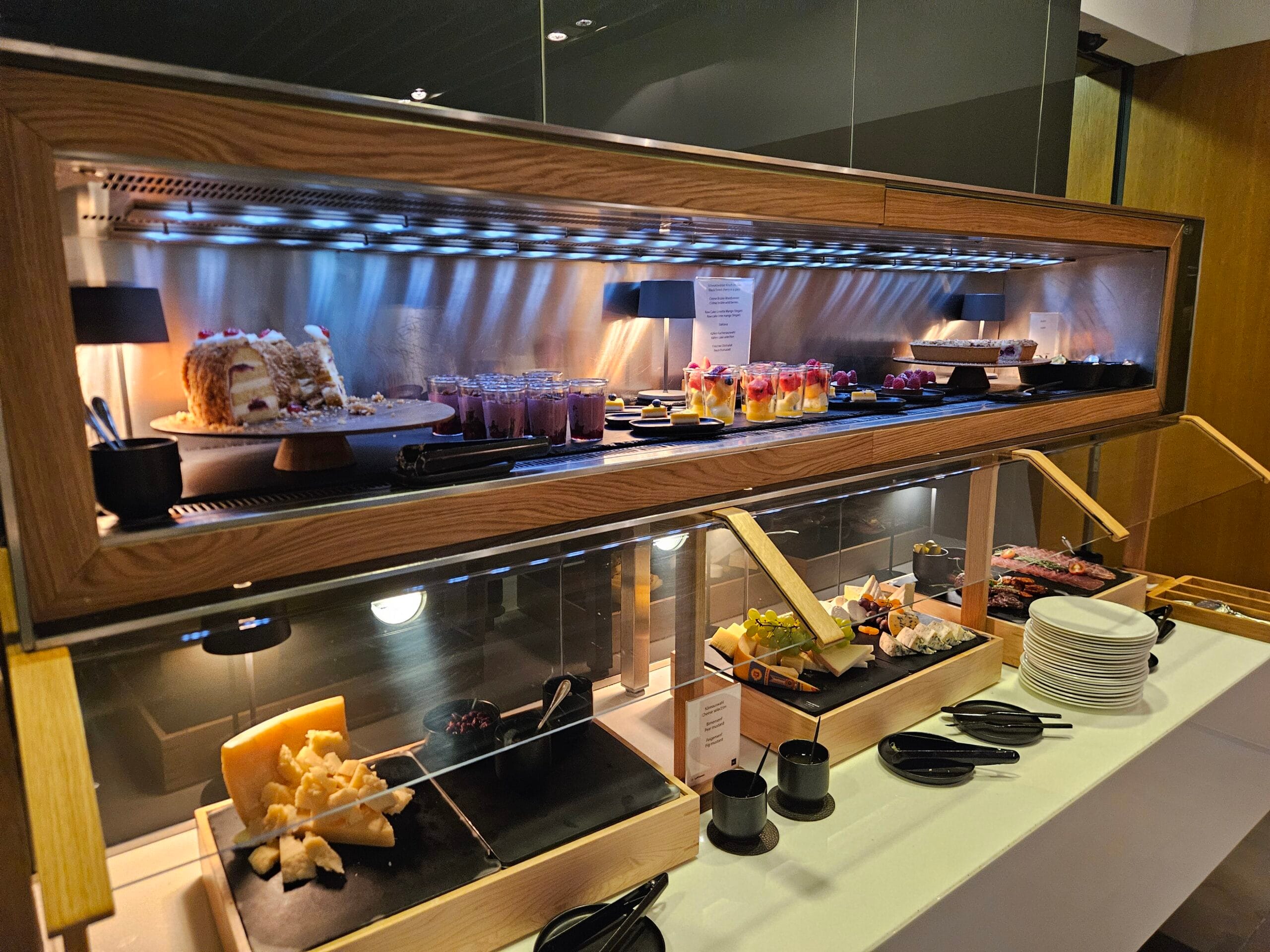 When it comes to food, the lounge offers options to match every preference and dining style. Small snacks are conveniently available throughout the lounge for those who prefer a quick bite. For a heartier option, the buffet features a diverse range of high-quality dishes, making it an excellent choice for a substantial meal.