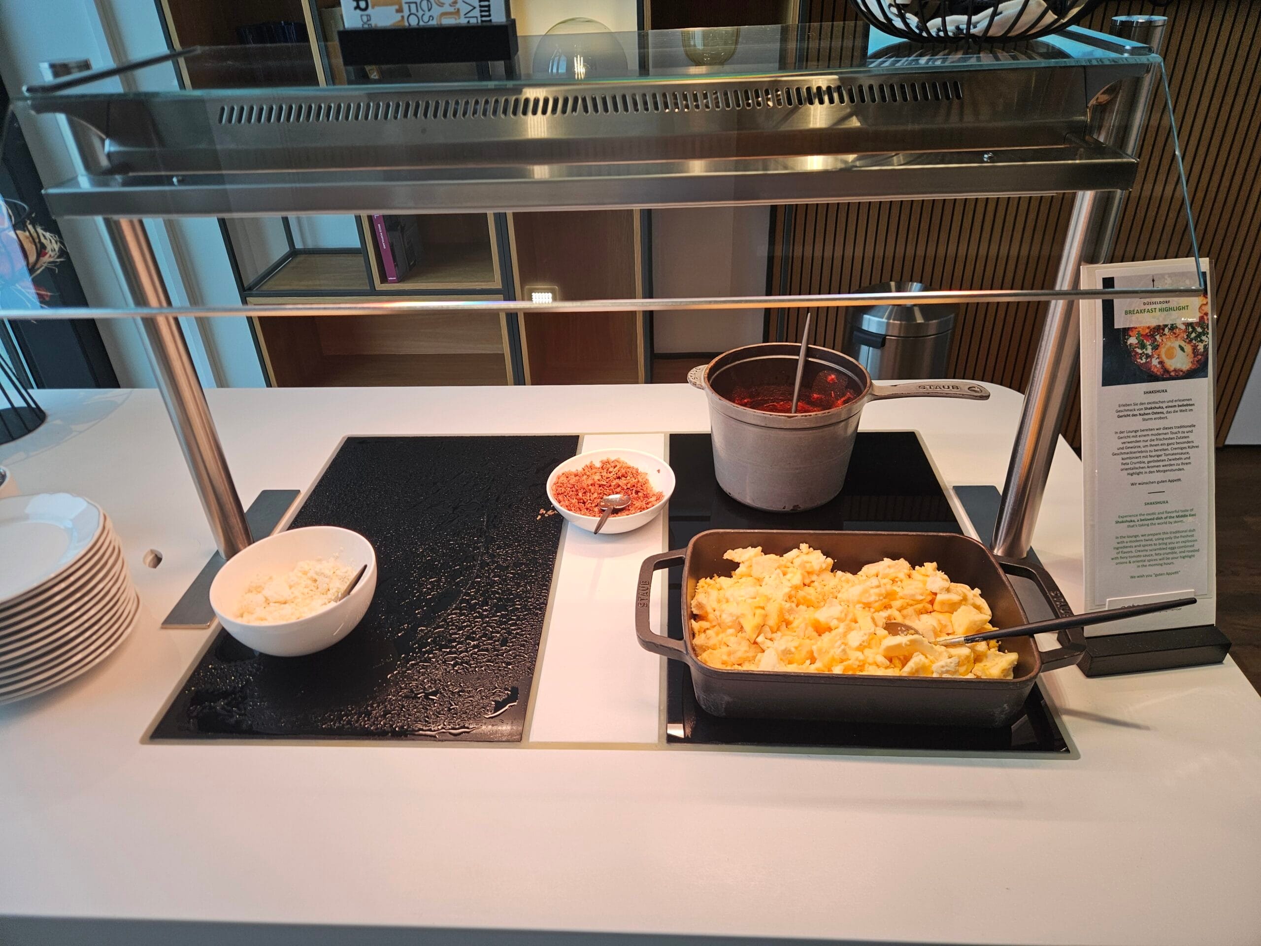 We visited the lounge during the breakfast hours, and were quite happy by the variety and quality of the food offerings available. The buffet featured an appealing selection of both cold and hot dishes, all of which were presented and appetizing manner. The cold items included a range of fresh options such as cheeses, meats, yogurts, fruits, and pastries. Meanwhile, the hot dishes were replenished regularly.