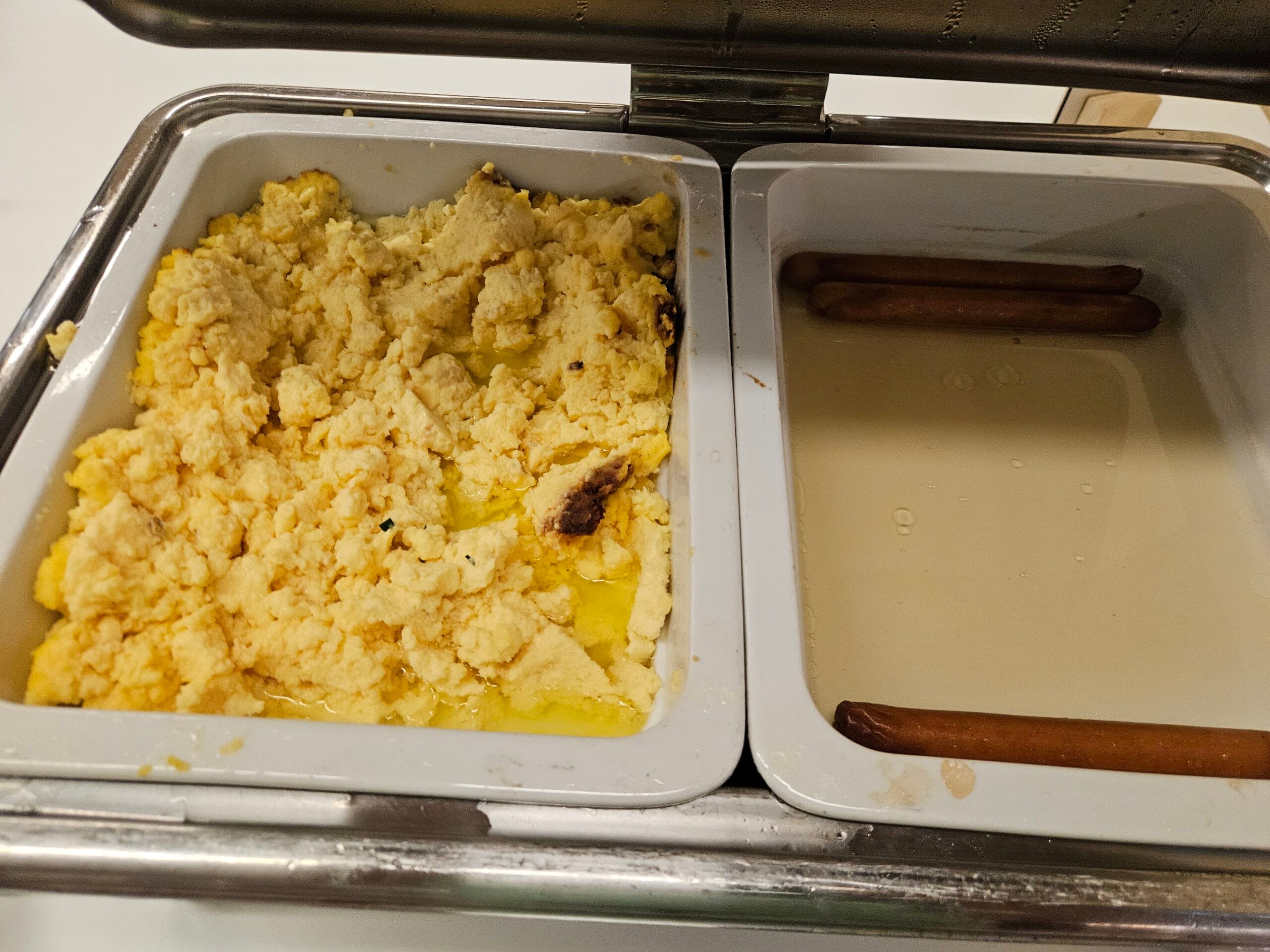 In terms of hot dishes, only scrambled eggs and some kind of soup was available