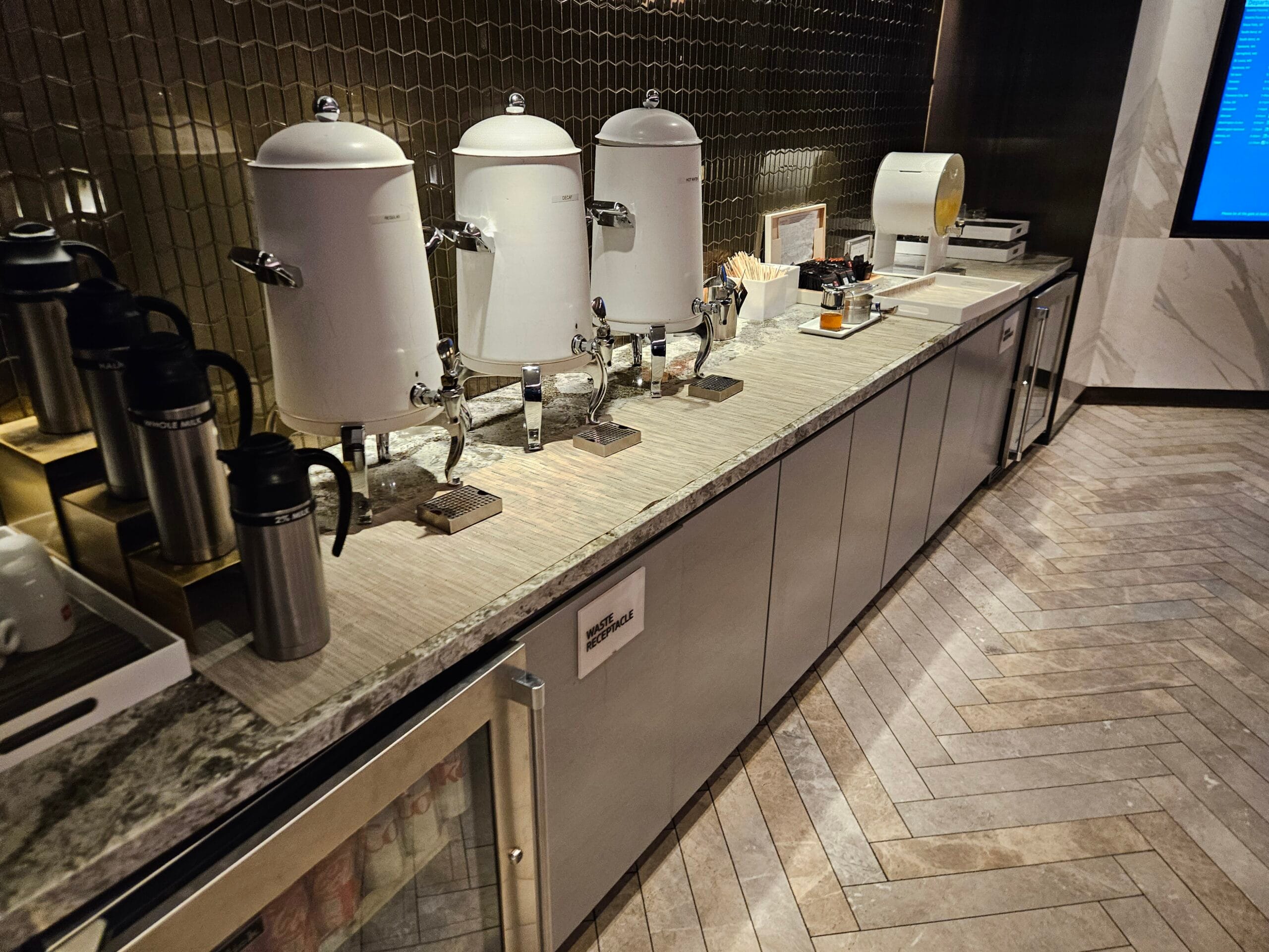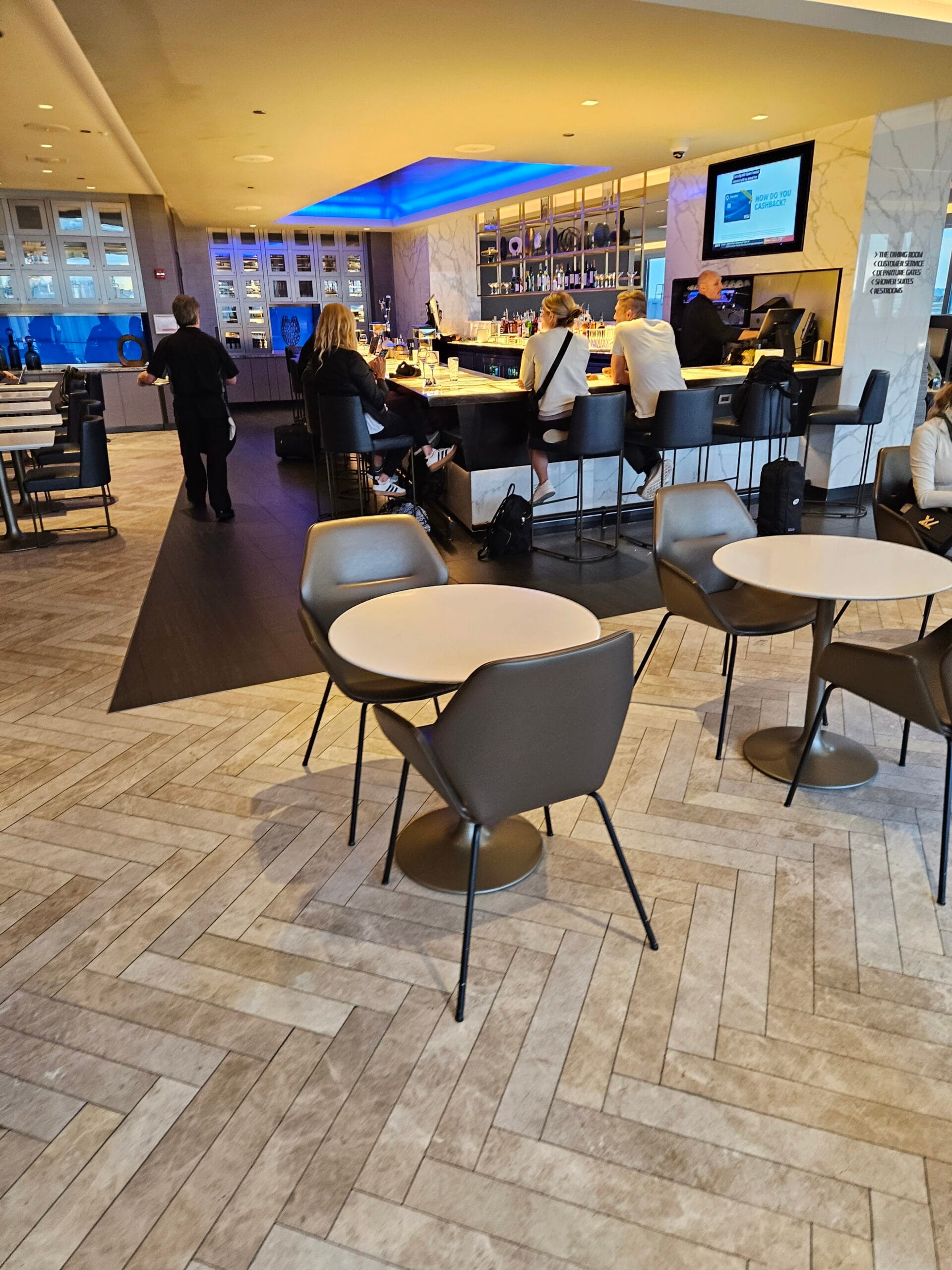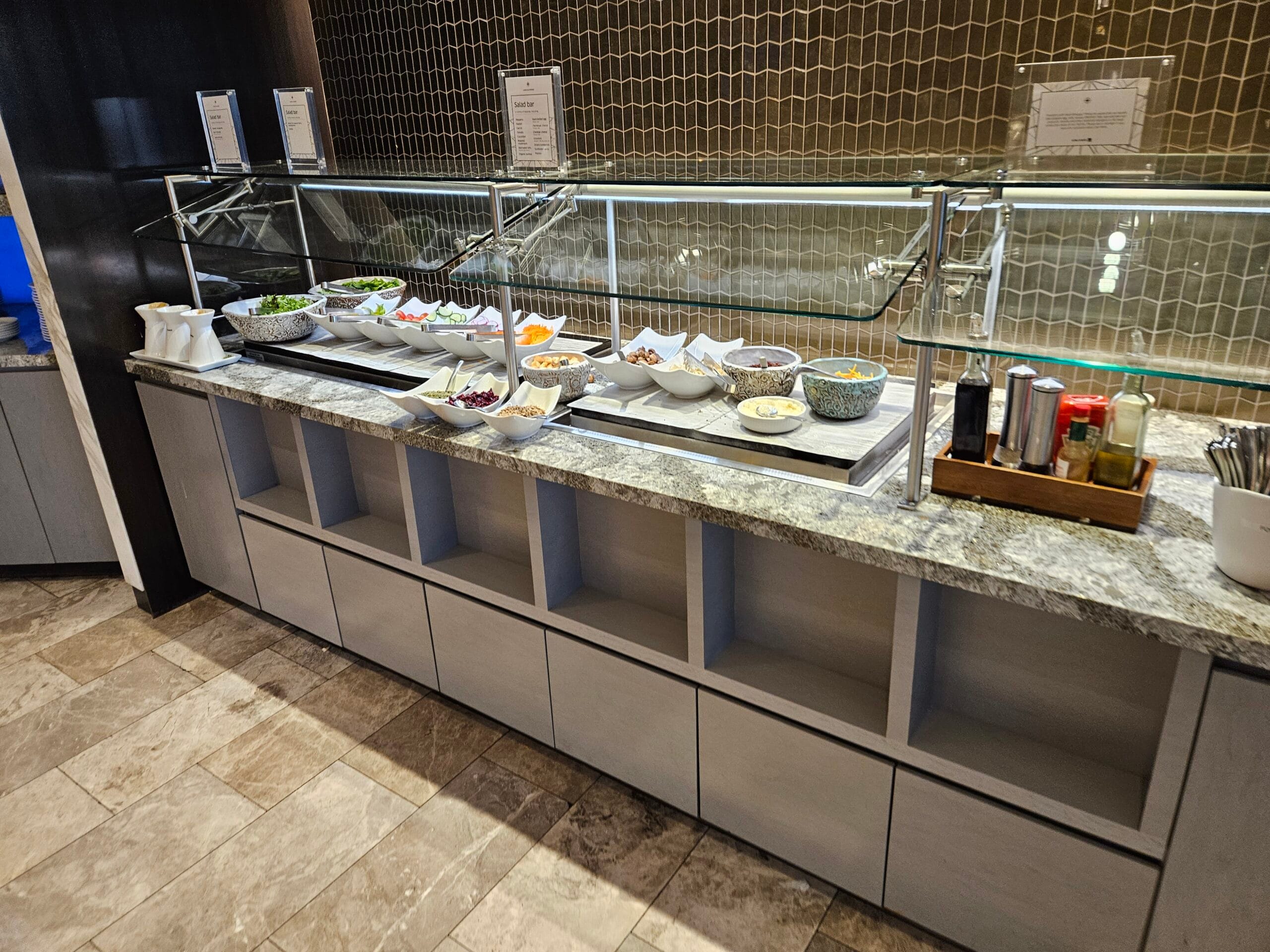 Additionally, to that, in terms of drinks, the lounge did not fall short of expectations. Soft drinks were available at the buffet, while the bar staff served an extended array of alcoholic beverages. The choices ranged from various beers to top-tier wines and spirits, in addition to a selection of excellent cocktails. In terms of drink service, it might be the most outstanding lounge we have had the pleasure of visiting in the United States so far.