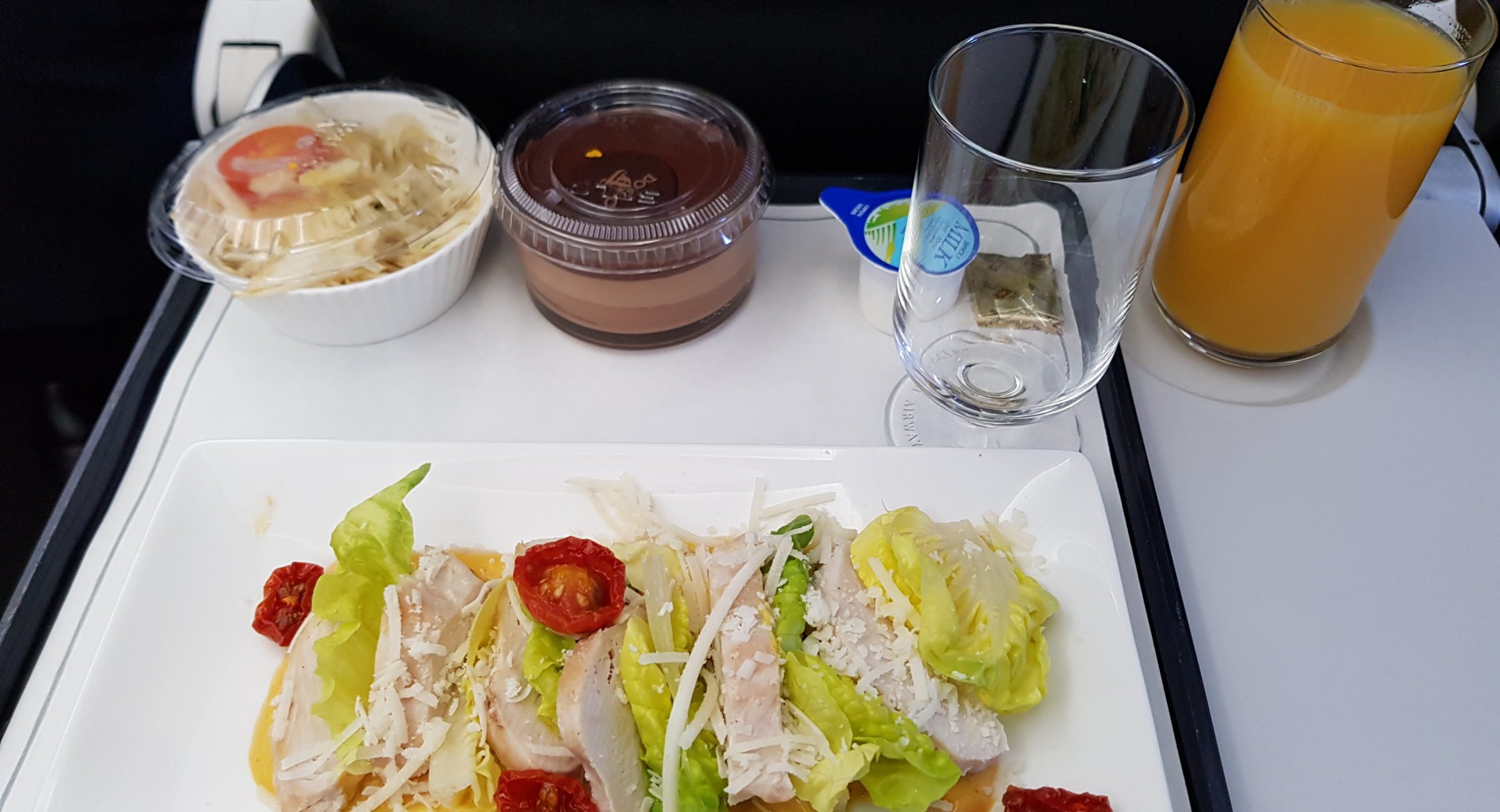 Flight review of British Airways Club Europe on the short 1 hour flight from Luxembourg to London on an Airbus 320 in Autumn 2018. We payed around 160€ for this return flight. Boarding & Check-in For Check-in at Luxembourg Airport you have a dedicated line for Club Europe Travellers and Status members, and when we did our check-in nobody was in front of us. For Boarding the process is similar an we boarded as one of the first passengers. A little bit annoying however was that we had to wait for 5 minutes on the bridge before actually boarding the plane. Seats The seats on the A320 are in a 3-3 configuration, where the middle seat stays empty in Club Europe and a tray is placed between the armrests of the empty seat so that you can place your drinks here. The seats were new ultra slim ones which are not too comfortable and a little bit firm, as on most of the European carriers these days. Legroom is not very good and literally the same as in economy as you can also see in the pictures. Due to the spare middle seat it was however possible to extend your legs to some point. No power sockets are available but at least every seat has its own air vent. Food & Drinks As aperitif I choose a Gin Tonic, and it was nice to see that British Airways serves Fever-Tree tonic instead of Schweppes. During the meal you could order more drinks but I was satisfied with my Gin Tonic. A small lunch tray was served as well, and we had the choice between a feta lentils or Caesars salad. Surprisingly, both were tasteful and especially the dessert mousse was delicious. It definitely seems that British Airways improved their food quality over the last years. Staff & Other Services Staff was very polite and helpful, in that respect the flight was perfect. In terms of other services, you had the choice of the standard magazines, and unfortunately, WiFi is still not available in Club Europe these days. Conclusion Business class in general on the European carriers for domestic flights, does not give you much more value over economy other than a drink and a meal, and British airways is no exception here. The staff however was surprisingly friendly, but WiFi is still missing on continental British Airways flights. For 160€ return, lounge access and 80 tier points as we described here: Fly business class Luxembourg-London 160€, whole year you can however definitely consider flying Club Europe if you need to check some luggage, as the price is hardly higher than a usual economy flight within Europe and it is one of the cheapest business class return flights out there. Note: All deals are personally verified and bookable directly with airlines or reputable travel partners. Prices and availability can change quickly, we never sell flights ourselves.