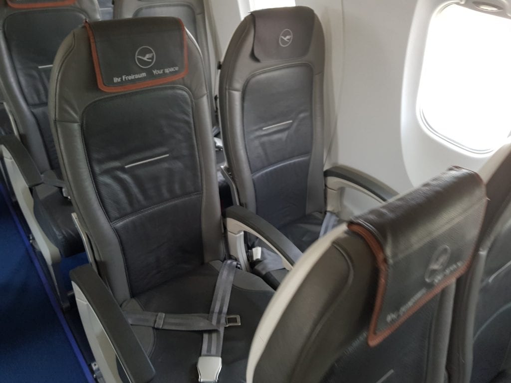 The seats are in a 2-2 configuration and are the new ultraslim ones. Legroom is very limited and the seats are not very comfortable in my opinion. At Lufthansa like many other European carriers, flying short-haul business class, you will have a normal economy recliner seat with the seat adjacent to it blocked. For my 25 minutes flight this was more than enough, however you are probably better seated in an emergency exit row. No power sockets are available.